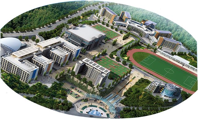 學校布局合理,設施設備齊全,環境優美。截至目前,學校占地面積400余畝,建筑面積137826平方米,有教學樓5棟,實驗大樓1棟,辦公樓1棟,圖書館1個(藏書18萬多冊,電子圖書76萬冊,有60臺電腦的電子閱覽室1個),大禮堂1個(座位2088個),多媒體會議室3個,有音樂室、舞蹈室、通用技術教室、心理咨詢室等功能室17個,食堂3個,教師公寓6棟(500套住房),學生宿舍樓8棟。體育設施設備齊全,有籃球場9個,排球場7個,羽毛球場6個,標準足球場1個等。
